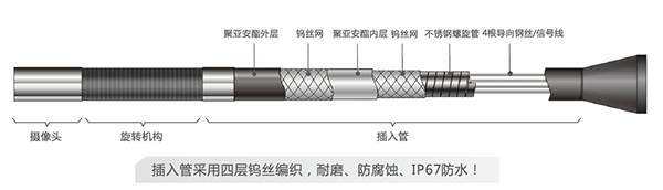 SIE-P便携式工业内窥镜插入管材质为四层钨丝编织耐磨管,防水等级IP67