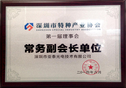 亚泰光电首页 >> 走进亚泰 >> 亚泰光电资质荣誉 >> 企业资质 >> 深圳市特种产业协会常务副会长单位