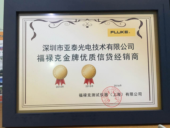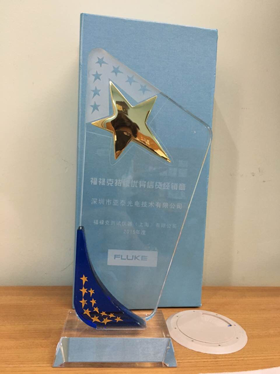 福禄克与到会的合作伙伴分享了2015 年的销售情况以及2016年业务发展方向并提出了“1+1=11”的大会主题。会议对重点渠道合作伙伴在2015年取得的成就给予表彰,并为年度最有价值合作伙伴进行了颁奖。奖项是基于合作伙伴在其相关业务领域的卓越表现、销售增长以及与福禄克共同开发新的战略客户等指标进行综合评定的。深圳市亚泰光电荣获“金牌优质信贷奖”,亚泰光电已持续两年获得此奖项,这充分肯定了亚泰光电在产品推广和销售方面所取得的成绩。