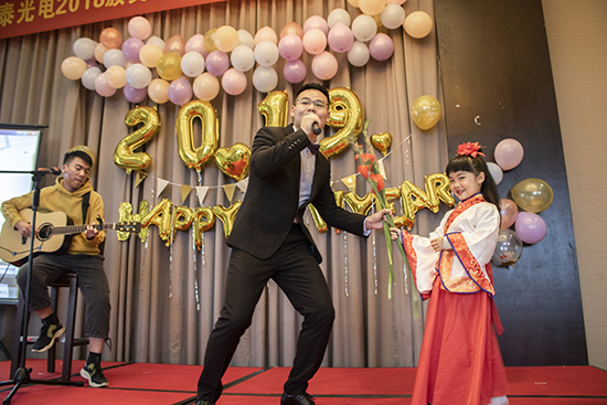 2019年亚泰光电企业年会得到了公司领导及管理层的大力支持,亚泰员工自编自导共有10余个节目参与演出,形式多种多样,既有《亚泰光电之歌》诗词朗诵、吉他弹唱,又有魅力四射的现代舞蹈,特别是穿插的幸运抽奖环节更是将活动现场一次次推向高潮,整个宴会大厅沉浸在一片欢乐的海洋之中。