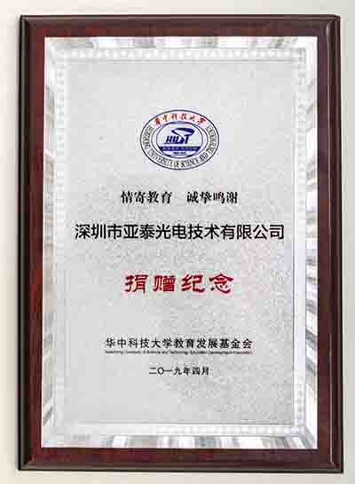 捐赠仪式在与会嘉宾的陈陈掌声中热列进行,各爱心企业回报母校、回报社会的热情真真切切,十余年来,亚泰光电在自身发展的同时,始终没有忘记社会责任,把关心、教育、回馈社会当作企业应尽的义务,积极支持华中科技大船海学院的建设与发展,公司向华科大船海学院捐赠十万元设立“亚泰光电金创奖学金”,在捐赠仪式上亚泰光电郑总说道:自己现在取得的进步离不开母校的培养,在华科大度过了人生中最美好的青春年华,让我收获了一生当中最宝贵的知识财富,希望能用自己的力量回馈母校,期望船海学院不断培养优秀毕业生,为国家、社会和学校建设添砖加瓦;亚泰光电今后将一始既往的支持学院的人才建设。怀念、感谢、展望!