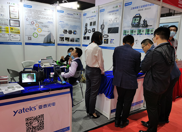 在展会现场,亚泰光电的工业内窥镜产品备受前来参观观众和媒体的瞩目,参观者们体验产品后,不仅对亚泰光电产品的实用设计赞赏有加,更被亚泰光电产品的领先技术所吸引!亚泰光电的展位站满了现场咨询、交流产品的观众。
