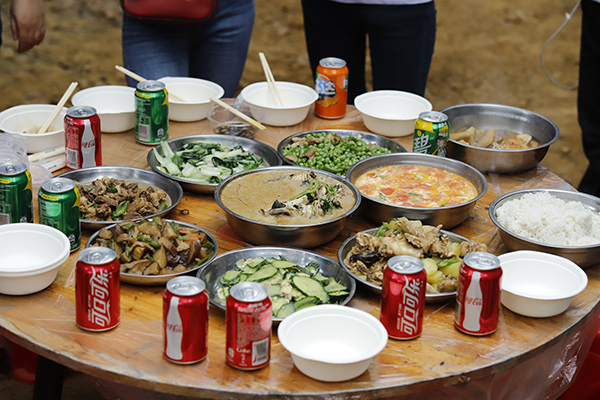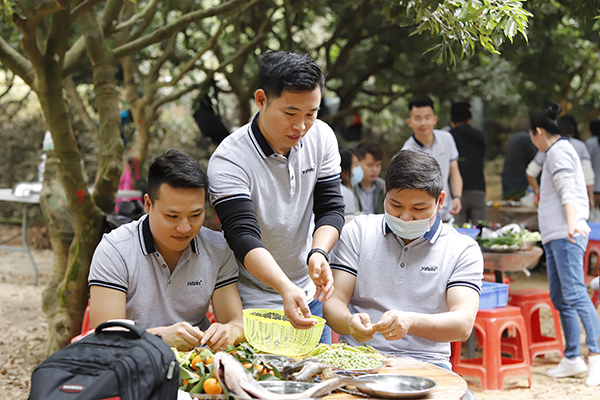 中午时分,年会开始了吃货环节,大家自己动手、丰衣足食,各团队将自带的食材及酒水、饮料等归集一起准备各自小组的午餐,各组队成员有的切菜、有的洗菜,有的拾材,有的炒菜,一盘盘香喷喷、美味可口的家常菜西红柿炒蛋、虎皮尖椒、年年有鱼、肉沫茄子等美味可口的菜肴很快就做好并迅速被一扫而光,其乐融融,吃得好、喝得好,玩得好,好不热闹。