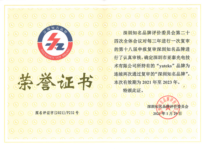 随后,罗琪琳部长将标志着中国优质品牌符号的“深圳知名品牌”证书及牌匾交到了市场相关负责人手上,这份承载着评委会对亚泰光电产品和服务质量水平充分肯定,与社会公众对于亚泰光电品牌发展认可和期许的荣誉,将更加促进亚泰光电的发展进程和管理水平上升到更高、更新的台阶。
