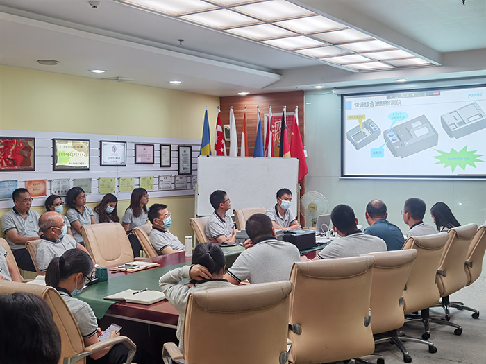 亚泰光电2021油液监测新产品发布会于2021年7月31日在亚泰光电多功能厅隆重召开,公司销售部、研发部、外贸部、上海办事处、武汉办事处等各部门员工共聚一堂积极参与本次新产品发布暨培训交流会。