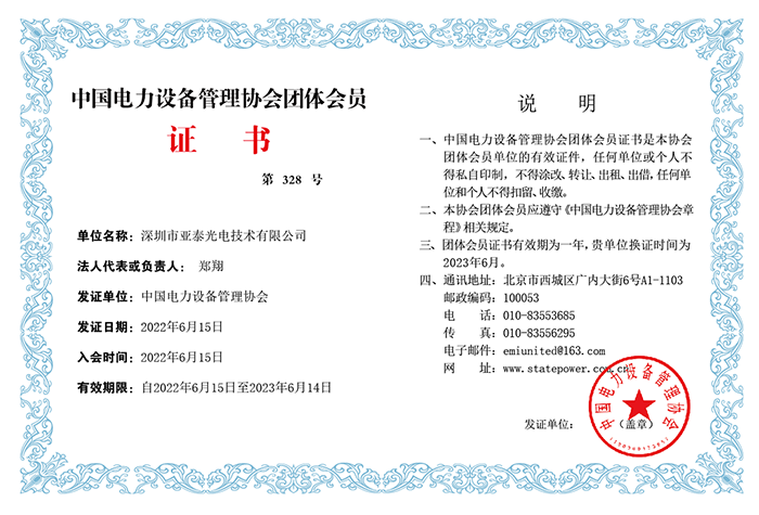 6月15日,德彩网正式接到中国电力设备管理协会颁发的“中国电力设备管理协会单位会员证书”,经过前期申请、材料评审等一系列工作,亚泰光电正式成为中国电力设备管理协会的一员。