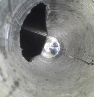 在接触亚泰工业内窥镜产品之前,客户己有购买国内某内窥镜品牌工业内窥镜产品,现在客户主要考虑的是在不降低检测效果的情况下降低使用成本,同时看看亚泰内窥镜设备的实测效果,经过前期双方初步沟通对接后,亚泰内窥镜销售工程师按约定时间到达客户方演示现场,本次演示的工业内窥镜机型主要是HDMIE310PA5、HDMIE210PM、GIE2.2mm直视、2.8mm直视、3.0侧视等型号内窥镜,为了检测设备水环境下的试用性,下午客户特意拿新购的高压水枪冲刷铝机加工件后,再次用亚泰工业内窥镜进行验证检测。车间平时一天测500-600个料,一个班10多个人常年都要用设备检查,检测完用油管连接验证,现场实测时,用亚泰直径2.8mm测4mm小孔,由于内窥镜模组靠内壁太近,检测效果一般,销售工程师后换作用直径2.2mm内窥镜设备检测,客户方现场负责人看完演示后立马表示亚泰内窥镜设备效果确实很不错,非常清晰,当时,客户就现场拿手机录制检测效果视频和图像并上报给其上一级领导。
