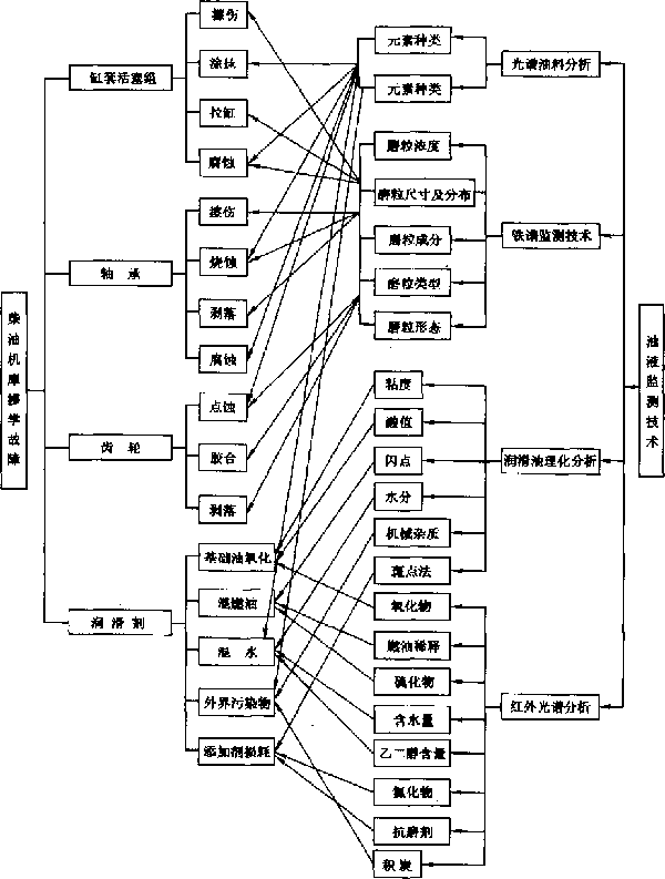 图2.1柴油机摩擦学故障与油液监测方法的相互关系