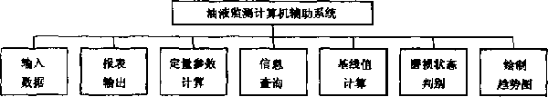 典型的油液监测计算机辅助系统由数据输入、报表输出、信息查询、定量参数计算、基线值计算、磨损状态判别趋势图的绘制等模块组成,系统结构如 图1.1所示。