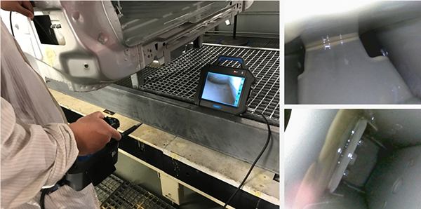 使用工业内窥镜作为一种可视的直观检查设备,效率很高。目前常用的检查位置很多,包括发动机的气门位置附近的积碳、机加工的各种相交孔产生的毛刺、铸造产生的铸件存在的沙眼毛刺等缺陷、查看焊接位置的质量及车身内部填充的质量等,并且,这些都成为了汽车制造中最重要的检测位置。