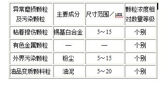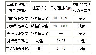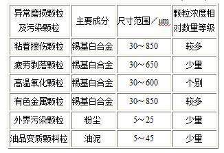 表2 油箱底部润滑油磨损颗粒和污染杂质特性