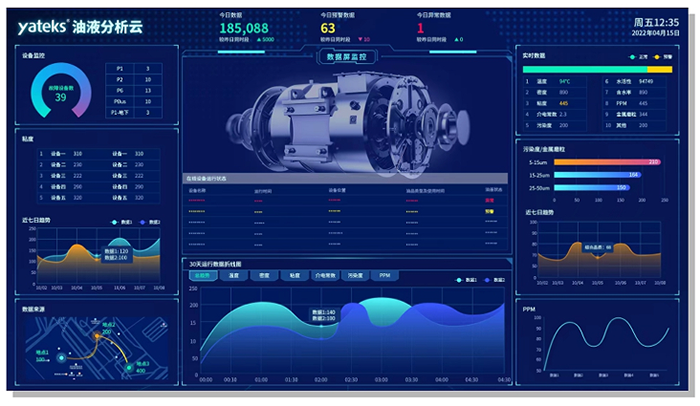 润滑系统内实时监测润滑油粘度、密度、水分、污染度、酸值、碱值等各项详细理化指标,提前预知设备的润滑状态