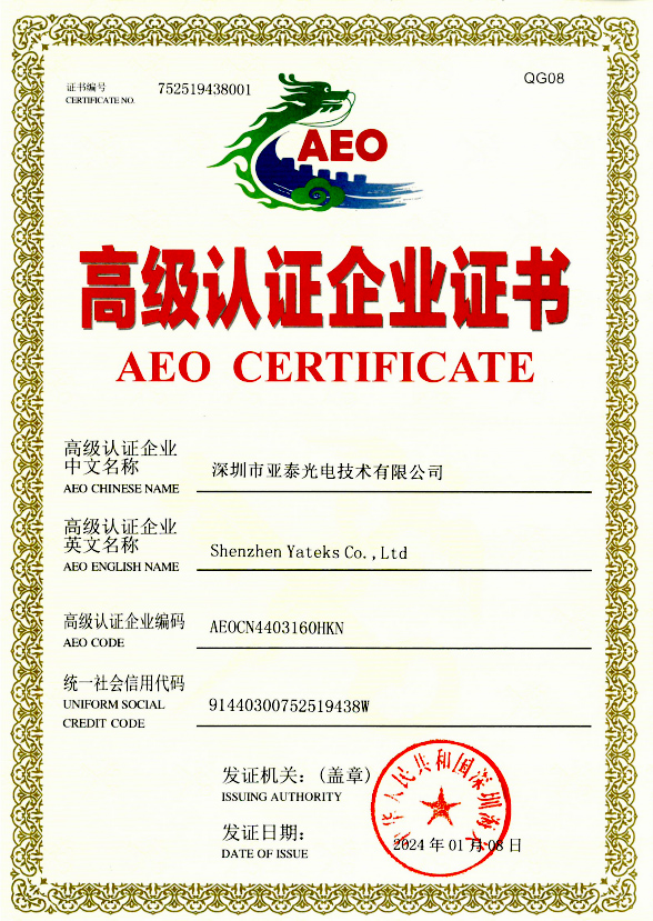 扎根中国,放眼全球。亚泰光电将以此次海关AEO高级认证为契机,进一步提高海关业务处理能力,持续提升企业经营管理水平,大力拓展国际市场,不断增强品牌知名度和核心竞争力,在国际市场舞台上展现更大作为。