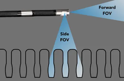 客户首先使用前视摄像头进行检查。这种视角使他们能够快速而彻底地检查整个部件。当他们穿过波纹管时,他们会一丝不苟地寻找任何重大缺陷,例如凹痕、划痕、拉伸区域或碎片。前视摄像头对于此步骤特别有利,因为它提供了广阔的视野,使用户能够快速准确地定位,工业内窥镜以进行进一步的详细检查。