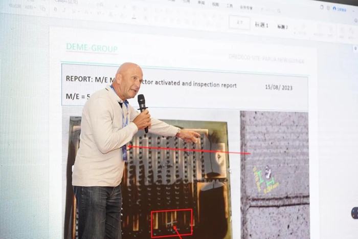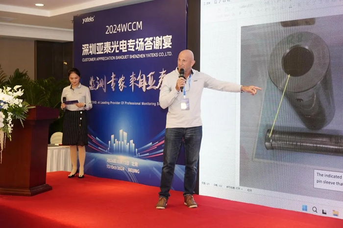 紧接着,亚泰光电的老朋友Werner Ruster分享了亚泰油液监测系统在船舶行业的成功应用案例。Werner详细介绍了亚泰光电的油液监测系统如何帮助船舶公司提高设备的可靠性和运行效率,减少维护成本,赢得了现场观众的热烈掌声。