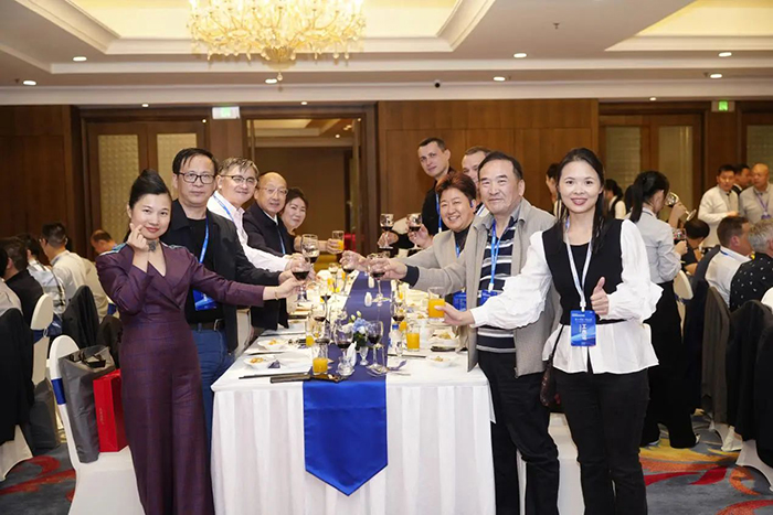 18:50,全体与会嘉宾在晚宴现场进行了大合影。随后晚宴正式开始。晚宴现场气氛热烈,参会者们在轻松愉快的氛围中畅谈交流,分享彼此的经验和见解。亚泰光电与各位嘉宾进行了深入的交流和讨论。