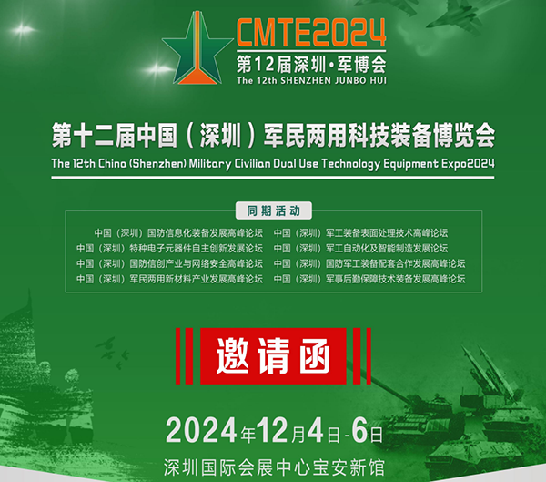 2024 第十二届中国(深圳)军民两用科技装备博览会(简称:深圳·军博会)将于 2024 年 12 月 4 日-6 日在中国·深圳国际会展中心盛大举行。深圳军博会在国家国防科技工业局、深圳市委军民融合发展委员会办公室的指导下,由中国和平利用军工技术协会、深圳国防科技工业协会等单位主办,本次博览会以“搭建供需对接平台 促进军民科技发展”为主题,提供展示我国国防现代化建设最前沿的装备、加强军民合作配套、实现信息沟通、技术交流、成果展示和产品洽谈的供需平台。