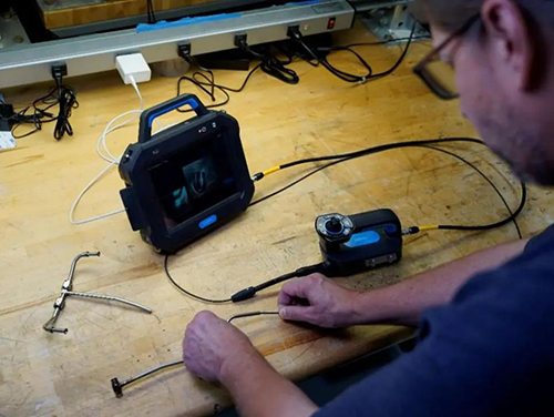 柔性导向技术:采用仿生学设计的360°任意导向探头,2.8mm直径管径在管道内实现精准操控,弯曲半径小于同行标准15%,尤其适用于航空发动机、精密机械等狭小空间检测场景。