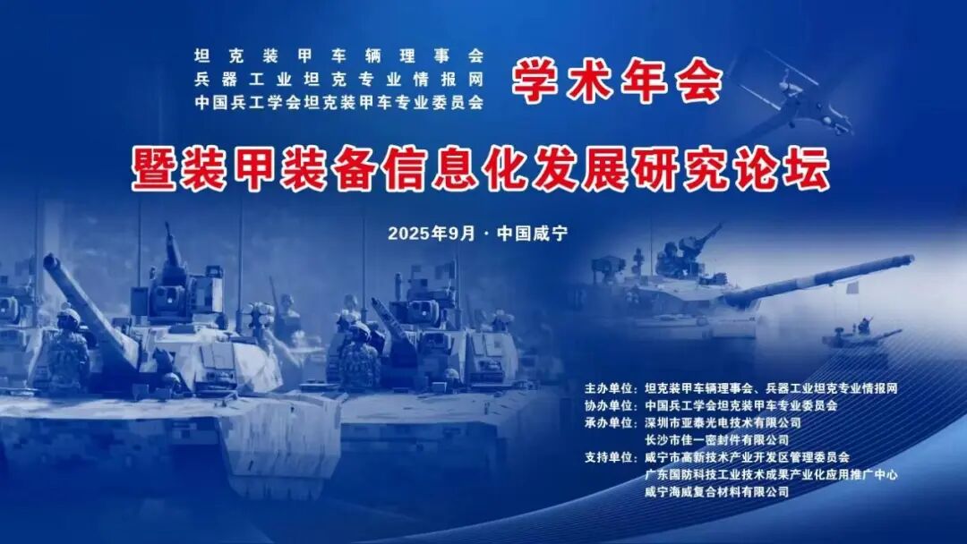 由坦克装甲车辆理事会、兵器工业坦克专业情报网主办,德彩网承办的"2025年坦克装甲车辆学术年会暨装甲装备信息化发展研究论坛"将于9月17日至19日在湖北咸宁华信大酒店隆重举行。本次会议以"装甲装备信息化发展"为主题,旨在深入探讨装甲装备信息化前沿技术,推动陆战装备智能化转型。