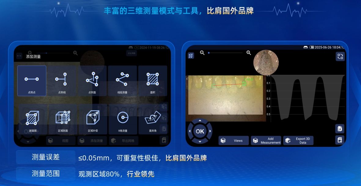 工业内窥镜是航空航天、能源电力、精密制造等领域不可或缺的“工业医生”,用于检测设备内部深处的缺陷。然而,高端的、具备三维测量能力的智能内窥镜设备长期被国外品牌垄断,价格高昂且存在技术封锁风险。